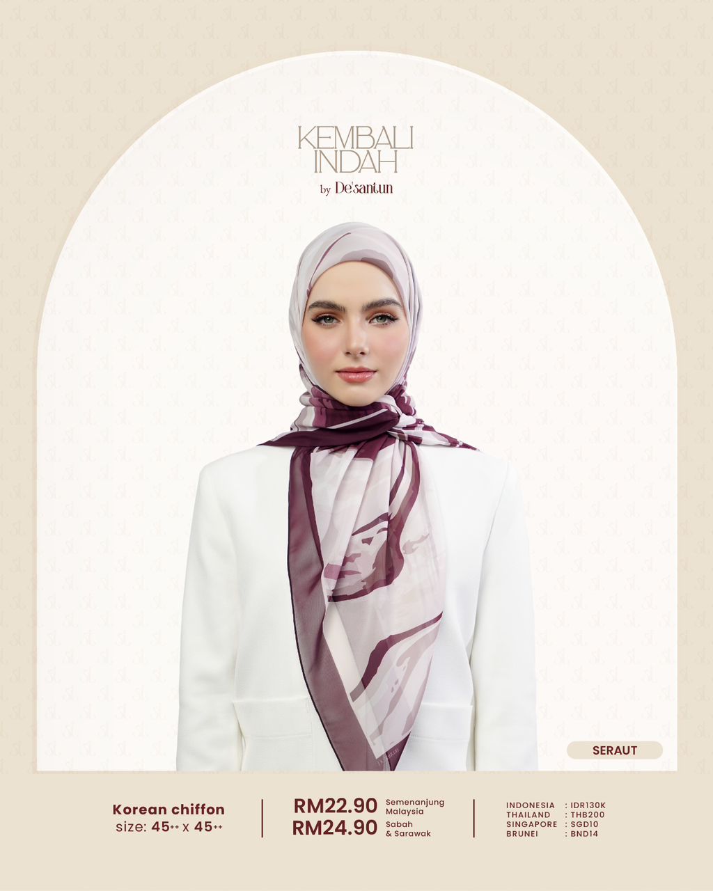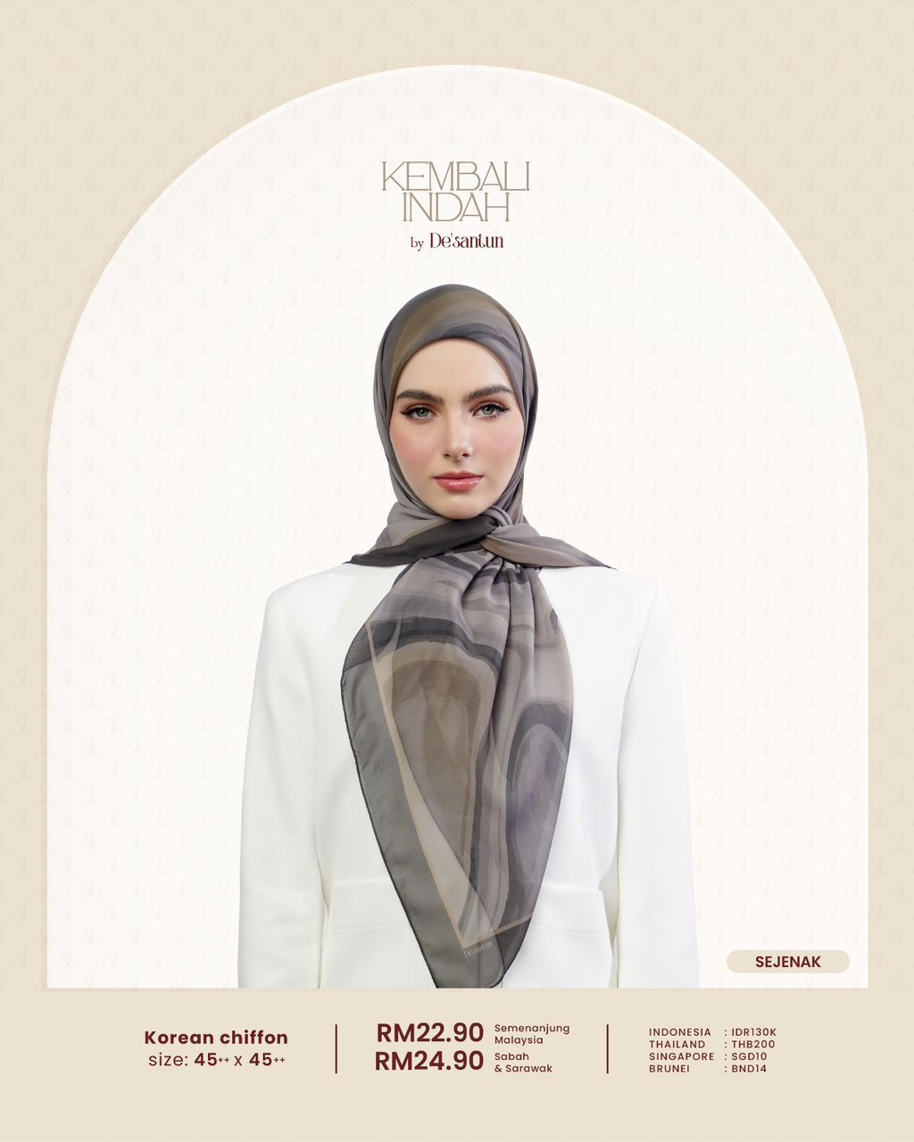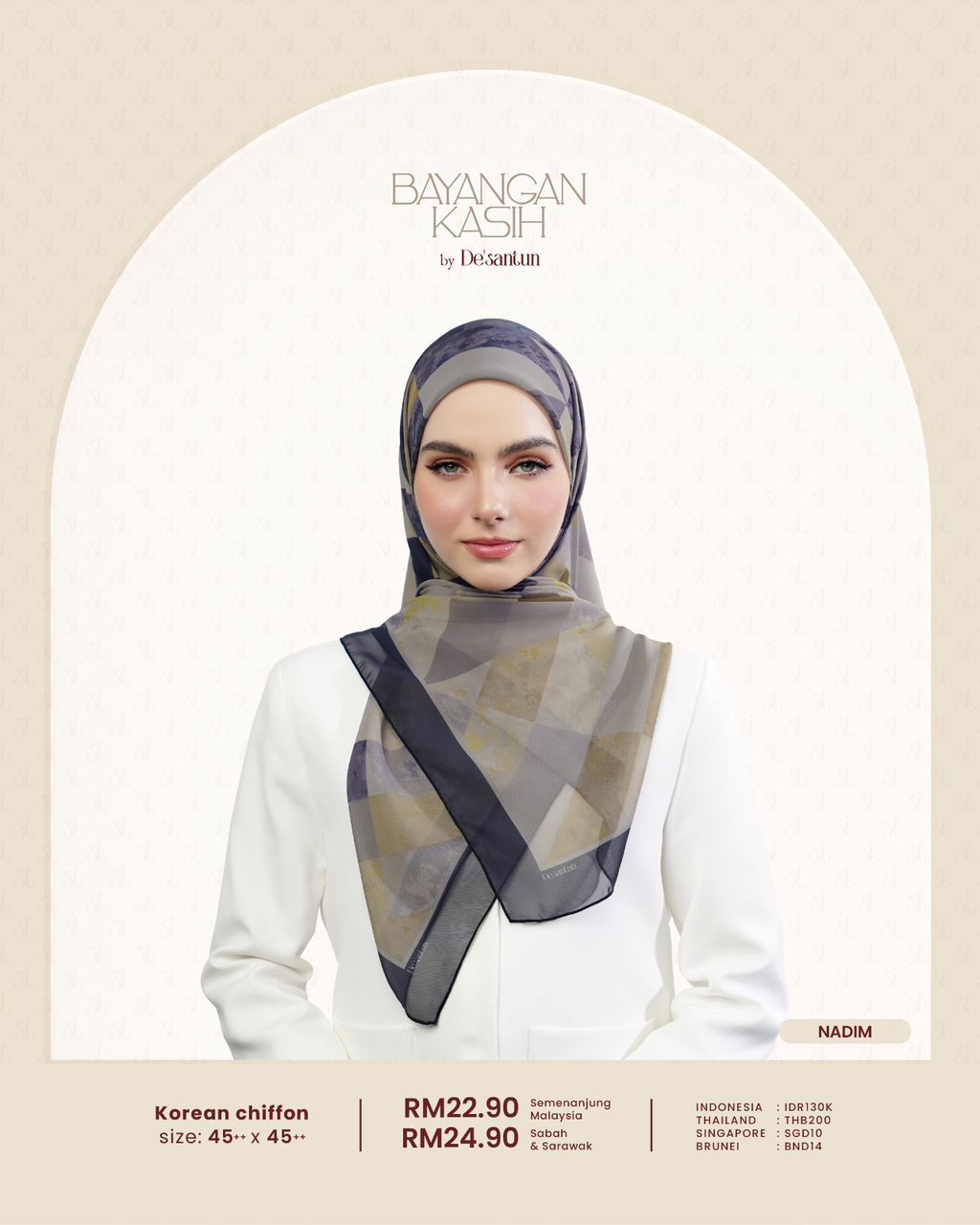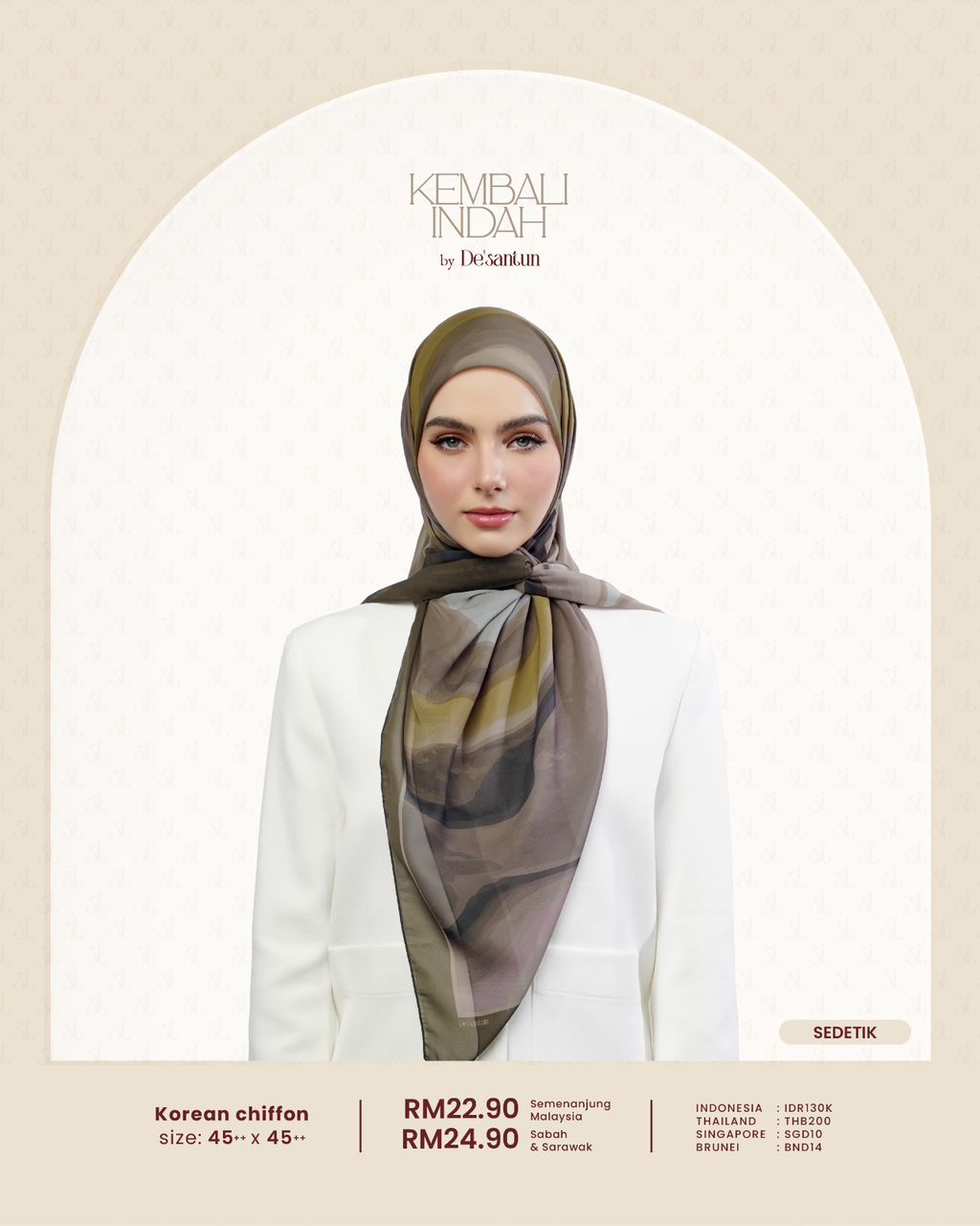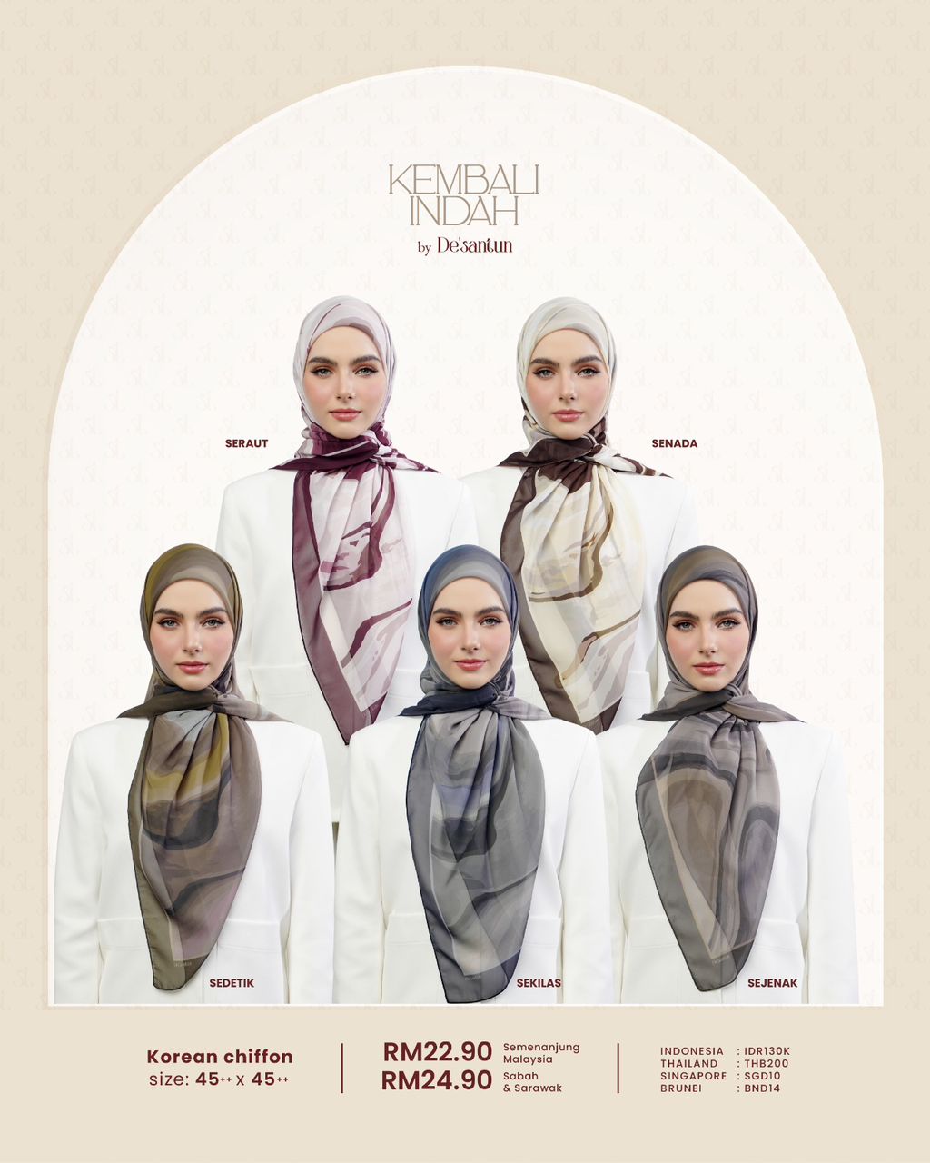 CHIFFON SENADA, CHIFFON SERAUT, CHIFFON SEJENAK, COTTON NIVARA, CHIFFON SEDETIK, CHIFFON ARUNIKA, CHIFFON SENJA, COTTON UMBRA, COTTON SUWARI, COTTON ALUNARI, CHIFFON RONA, COTTON EBONA, CHIFFON NADIM, CHIFFON SEKILAS, COTTON MENTARI, CHIFFON SUKMA, COTTON AUREA, COTTON GEMARI, COTTON VELORIA, COTTON LESTARI