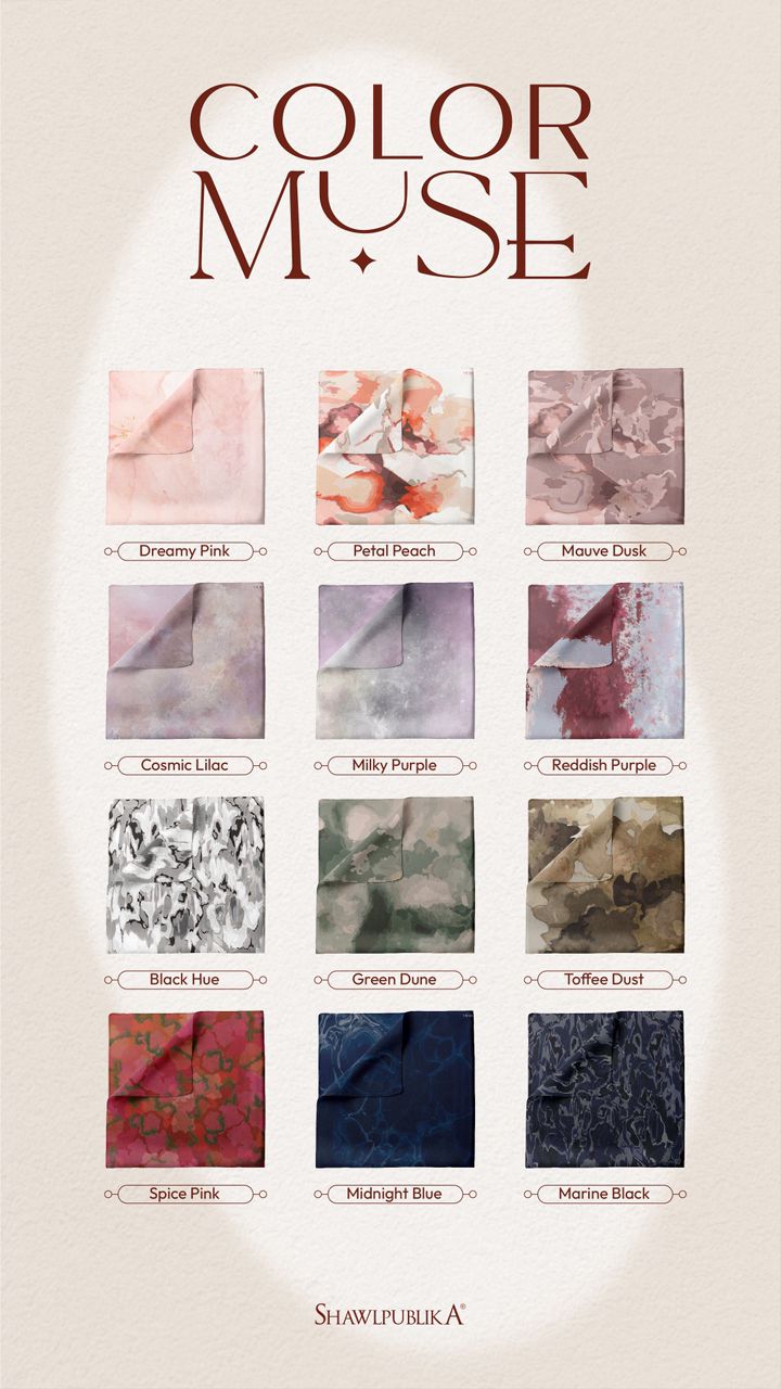 COLOUR | DREAMY PINK, PETAL PEACH, MAUVE DUSK, COSMIC LILAC, MILKY PURPLE, REDDISH PURPLE, BLACK HUE, GREEN DUNE, TOFFEE DUST, SPICE PINK, MIDNIGHT BLUE, MARINE BLACK |